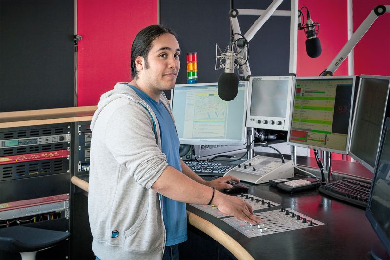 «Ihr schafft das eh nur einen Monat!» Diesen Satz hat Cedric Wiesendanger oft gehört. Und trotzdem liess er sich nicht von seinem Traum abhalten: Kino für die Ohren, das will er machen. Warum? «Durch Worte kann man die Fantasie anregen», sagt der 22-Jährige. «Und das Radio ist ein unabhängiges Massenmedium, das für die Meinungsbildung wichtig ist.» Themen, die Jugendliche interessieren, fänden kaum Platz in Sendungen der grossen Radio-Stationen. Und auch das Sammeln von ersten Erfahrungen bei einem Radio sei schwierig, wenn man noch keine Referenzen hat. Statt sich damit abzufinden, gründete Cedric im Alter von 20 Jahren zusammen mit Freunden ein Jugendradio, das als Plattform funktioniert. Im August 2013 gingen sie auf Sendung: Über 20 Jugendliche zwischen 13 und 24 Jahren senden abends ab 18 Uhr Beiträge, probieren Neues aus und experimentieren mit Formaten. Zu Interviews werden nicht nur junge Bands, sondern auch Promis wie Stress oder Viktor Giacobbo eingeladen. Tagsüber läuft Musik, die sich am Mainstream orientiert – «Musik, die Jugendliche halt gerne hören» –, ohne Werbung und «nervige Moderationen», dafür gibt es zwischendurch auch Songs von lokalen Bands oder Live-Übertragungen: «Wir gehen gerne raus und senden live vor Ort, zum Beispiel von der Jugendsession in Bern, von der Berufsmesse oder lokalen Openairs», sagt Cedric. Dazu transportieren die jungen Radiomacher das Radiostudio auch mal mit öffentlichen Verkehrsmitteln bis nach Bern.